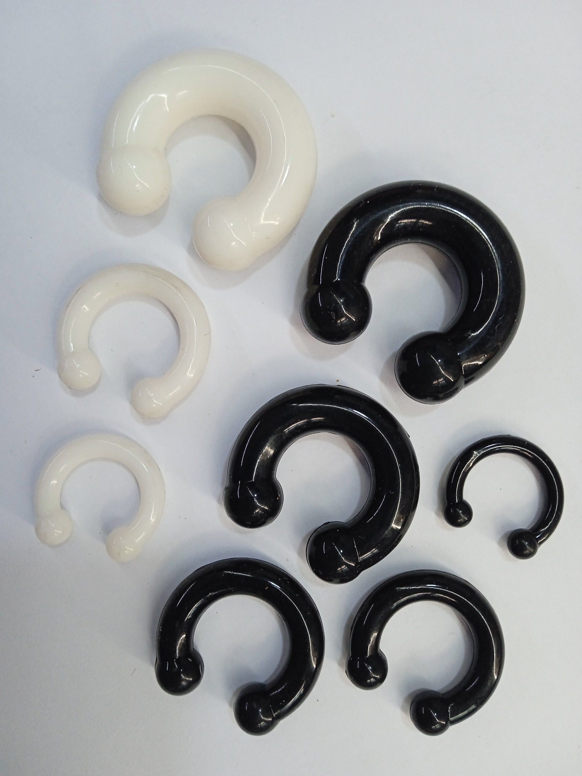 Circular barbel em silicone preto ou branco, com várias grossuras.